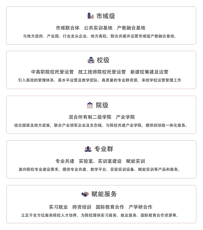民晟数智以教育部、工业和信息化部发布的《现代产业学院建设指南(试行)》相关要求为标准,结合各区域的政策及院校特色,为合作院校提供相关产品和服务。