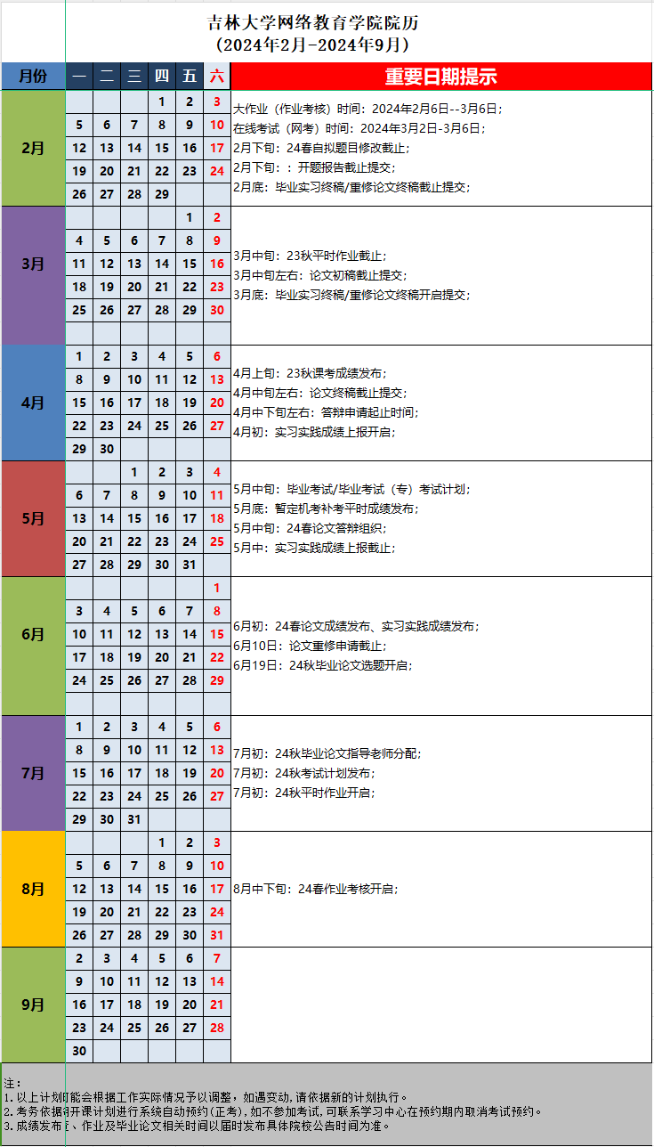 23.24春学期吉林大学网络教育学院院历(2024年2月-2024年9月).xlsx