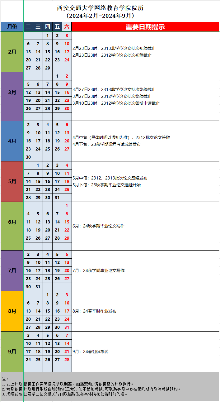 34.24春学期西安交通大学网络教育学院院历(2024年2月-2024年9月).xlsx