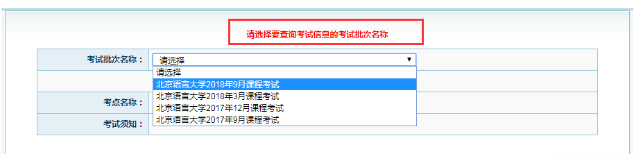 2,查看此批次或者其他批次已预约的考试和考点,在页面中选择【考试批次名称】方可查询。