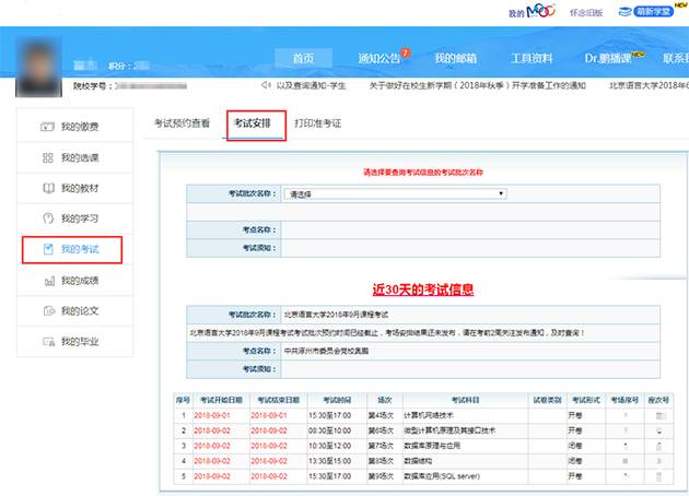 1,点击学生中心(http://learn.open.com.cn/)首页左侧——我的考试——考试安排。